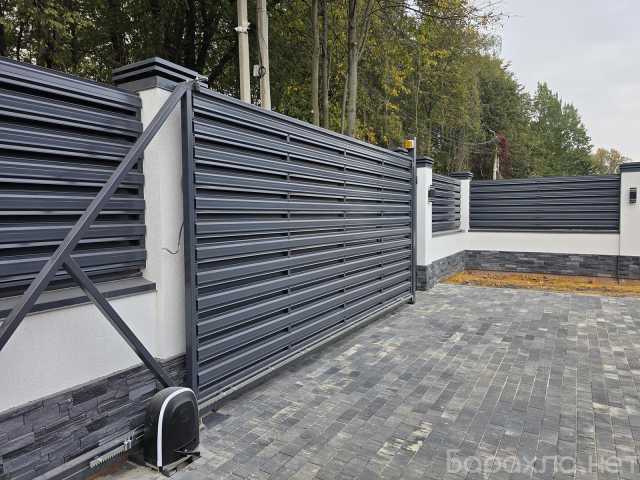 - Монолитная лента забора (250 мм) с отделкой декоративным камнем